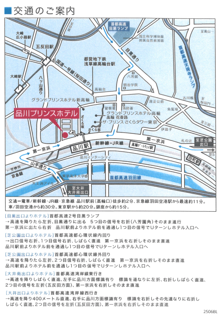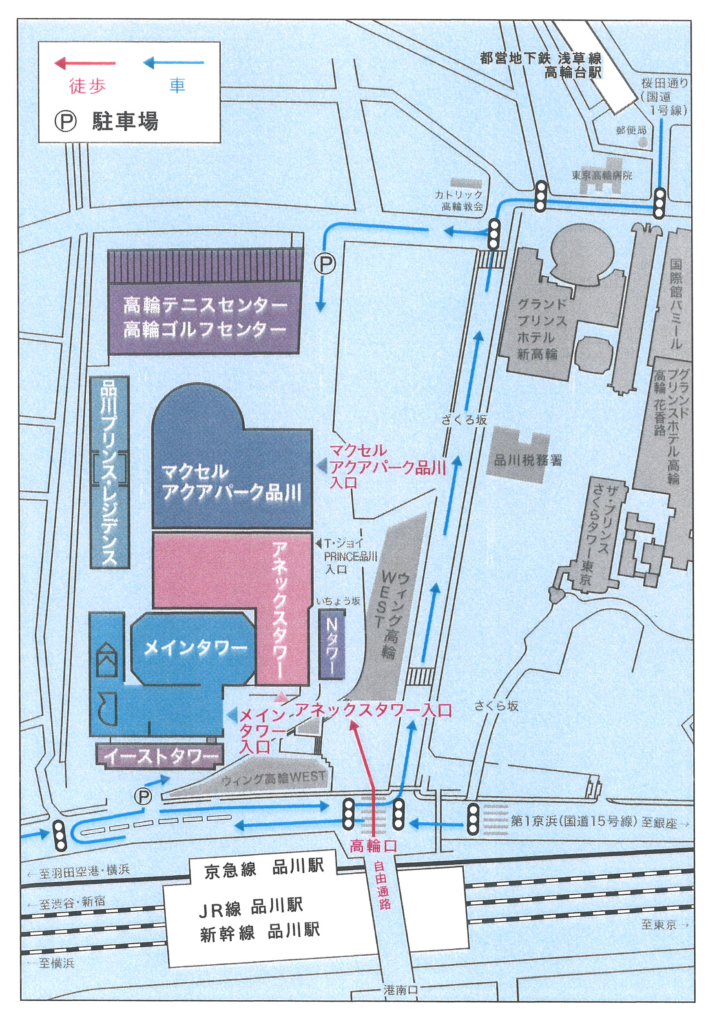 • エントランスから会場までは移動に少々お時間がかかります。最寄りの品川駅高輪口への到着時刻は会場到着予定の15分~20分前を目安にお越しください。