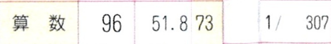 算数 96点/100点満点 平均点51.8点 偏差値73 男女別1位/307人