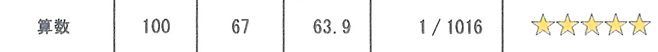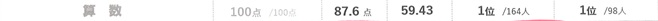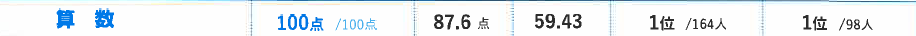 算数 100点/100点満点 平均点87.6点 偏差値59.43 1位/164人 男女別1位/98人 ![]()