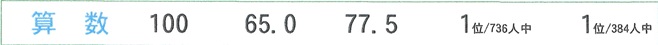 算数 100点/100点満点 偏差値65.0 平均点77.5点 1位/736人 男女別1位/351人 ![]()