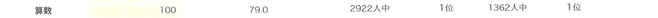 算数 100点/100点満点 平均点79.0点 1位/2,922人 男女別1位/1,362人![]()