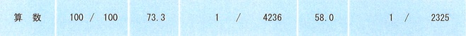 算数 100点/100点満点 偏差値73.3 1位/4,236人 平均点58.0点 男女別1位/2,325人![]()