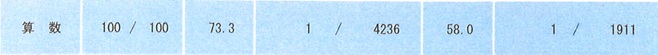 算数 100点/100点満点 偏差値73.3 1位/4,236人 平均点58.0点 男女別1位/1,911人