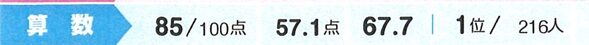 算数 85点/100点満点 平均点57.1点 偏差値67.7 男女別1位/216人![]()