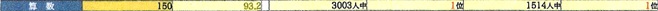 算数 150点/150点満点 平均点93.2点 1位/3,003人 男女別1位/1,514人