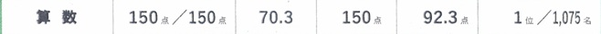 算数 150点/150点満点 偏差値70.3 最高点150点 平均点92.3点 1位/1,075人![]()