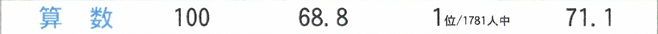 算数 100点/100点満点 偏差値68.8 1位/1,781人 平均点71.1点![]()
